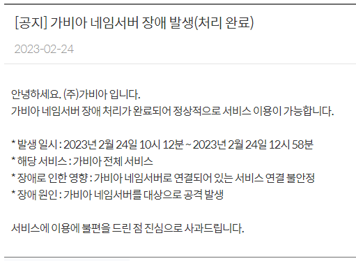 위 내용을 보면 2시간 46분 동안 장애가 있었는데 저는 11시 10분 경이 인지를 했으니 그동안 가비아 보안팀은 정신이 없었겠다 생각이 되었습니다.