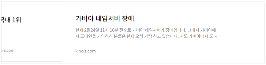와! 어떻게 가비아가 장애가 발생한건지 하고 다른 업무를 보려는데? 글 서두에 말씀드렸던 것처럼 저도 개인 도메인을 가비아를 통해 샀다는 것을 알아차린 순간 확인해 보니 역시나였습니다. ㅠㅠ