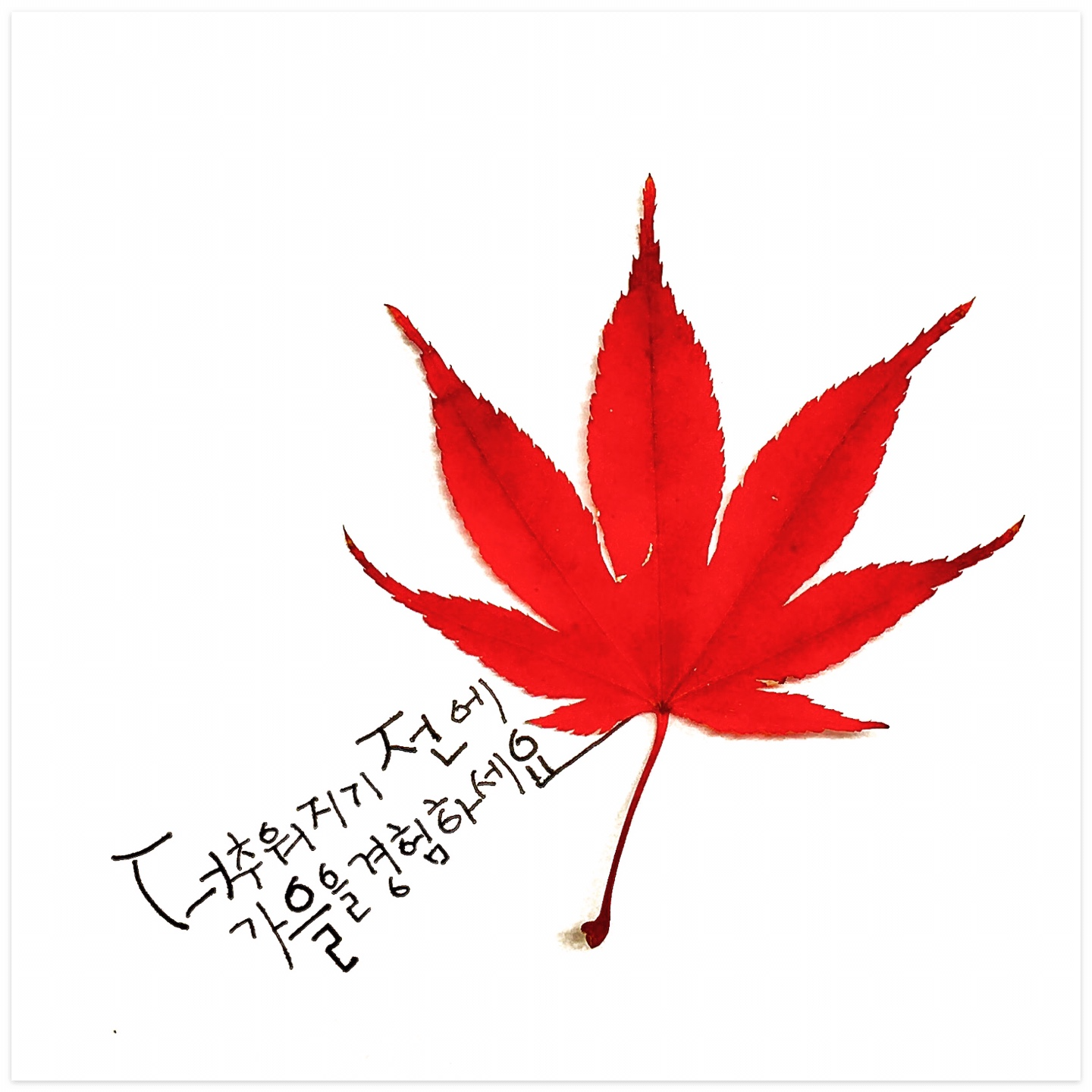 이날 선물로 받은 빨간 단풍잎으로 손글씨를 써봤어요