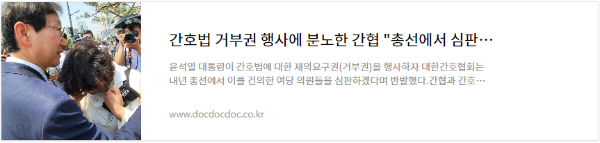 이런 말도 안 되는 행동을 저지른 그것도 국회에서 통과한 이 사안을 거부한 일에 대해서 대한간호협회는 대통령실 앞에서 기자회견을 가지고 간호법이 실현될 때까지 한 목소리를 낼 것이라고 하였였습니다.
