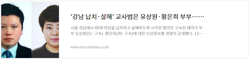 강남 납치 살해 사건 배후로 살인 교사 혐의로 구속된 유상원(51), 황은희(48) 부부의 신상 정보가 공개되었습니다.