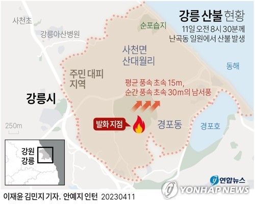 불이 발생하고 현재 인근 팬션 및 민가 5채가 피해를 입었으며 지속적으로 번지고 있는 상태 입니다