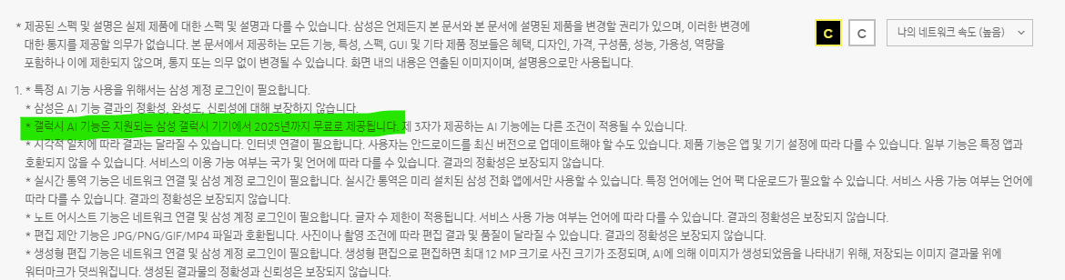 다만 해당 자리에서 AI의 기술은 급속도로 발전하고 이에 따라 서비스는 향상될 거이라서 앞으로의 상황을 보고 정할 것이라고 첨언하는 것과 삼성 공식 홈페이지 안내에 기록된 것으로 봐서 유료는 정해진 길이라고 볼 수 있습니다.