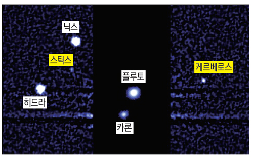 명왕성의 위성은 현재 5개(카론, 닉스, 히드라, 케르베로스, 스틱스)로 추가로 확인되었으며, 이들은 모두 명왕성의 플루토 이름처럼 지하세계 신화에서 이름을 따왔습니다.