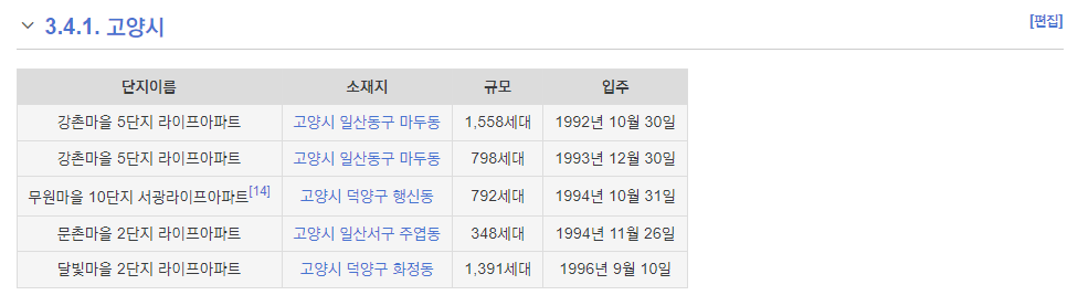 라이프 건설의 나무위키 정보를 보면 건설된 아파트가 정말 많이 있습니다.