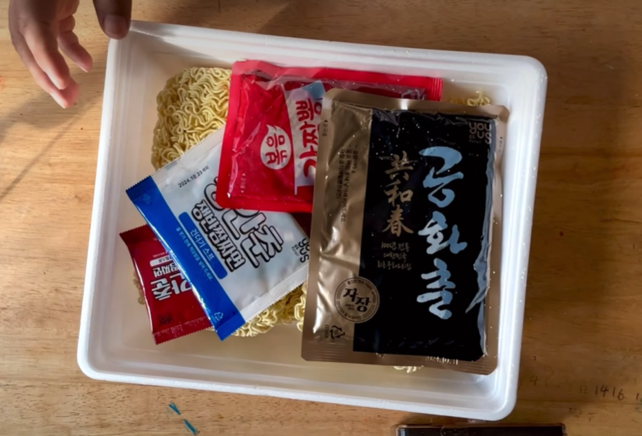 점보 도시락은 국물을 같이 먹는 라면이고 공간춘은 비벼 먹는 짜장면이라서 물을 충분히 넣어 면이 잘 익도록 하는 것이 좋습니다.