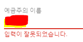 그런데, 구글 애드센스에서 계좌를 등록하려고 예금주를 입력해보신 분들은 아시겠지만 옆에 이미지처럼 계좌에 있는 예금주 이름인 한글을 입력하면 '입력이 잘못되었습니다'라는 메시지가 하단에 표시되고 빨간색 라인으로 변하게 됩니다.