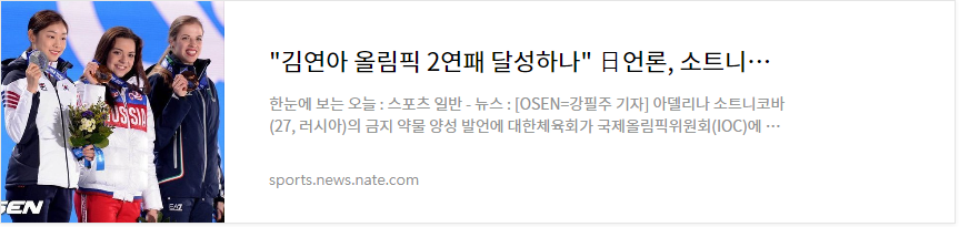 일본의 언론 '닛칸스포츠', '데일리', '도쿄스포츠'등은 11일 '한국이 소트니코바의 도핑 양성에 대하여 고백한 것과 관련해 IOC에 재조사를 요청할 예정'이라고 전했습니다.