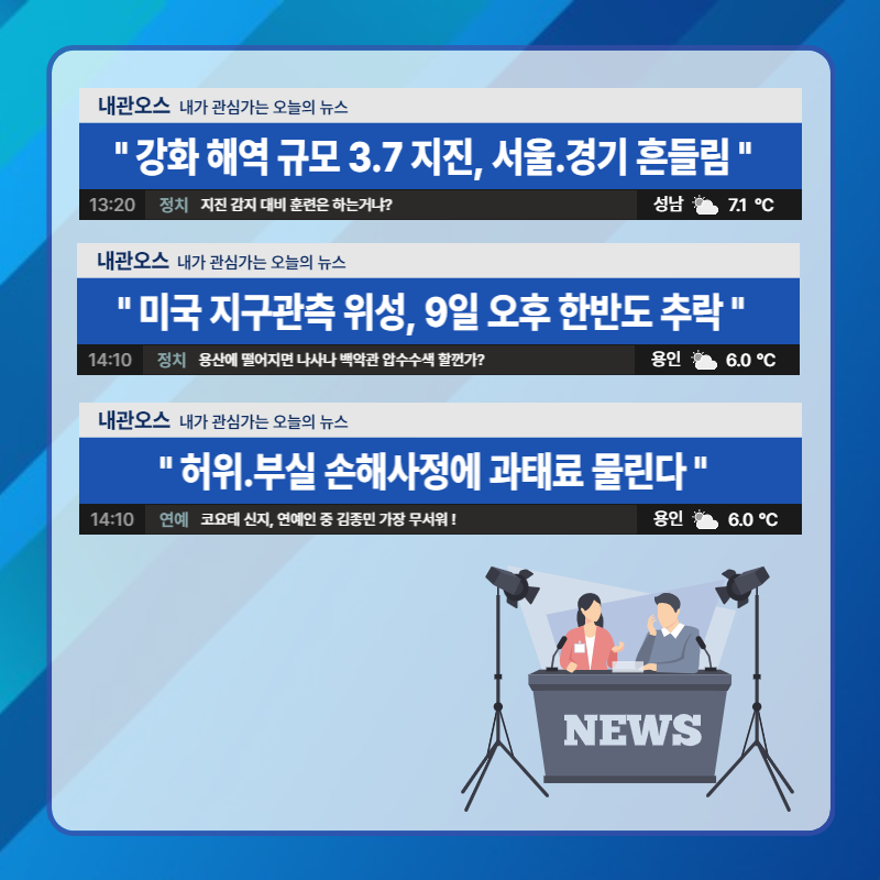 오늘은 '내가 관심 가는 오늘의 뉴스'라는 제목으로 3가지 소식을 전해 드리겠습니다.