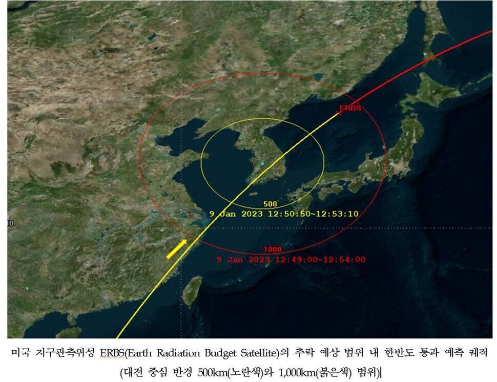 궤도분석 결과 오후 12시20분~1시20분에 가능“추락예측 범위에 한반도 포함…외부활동 유의”