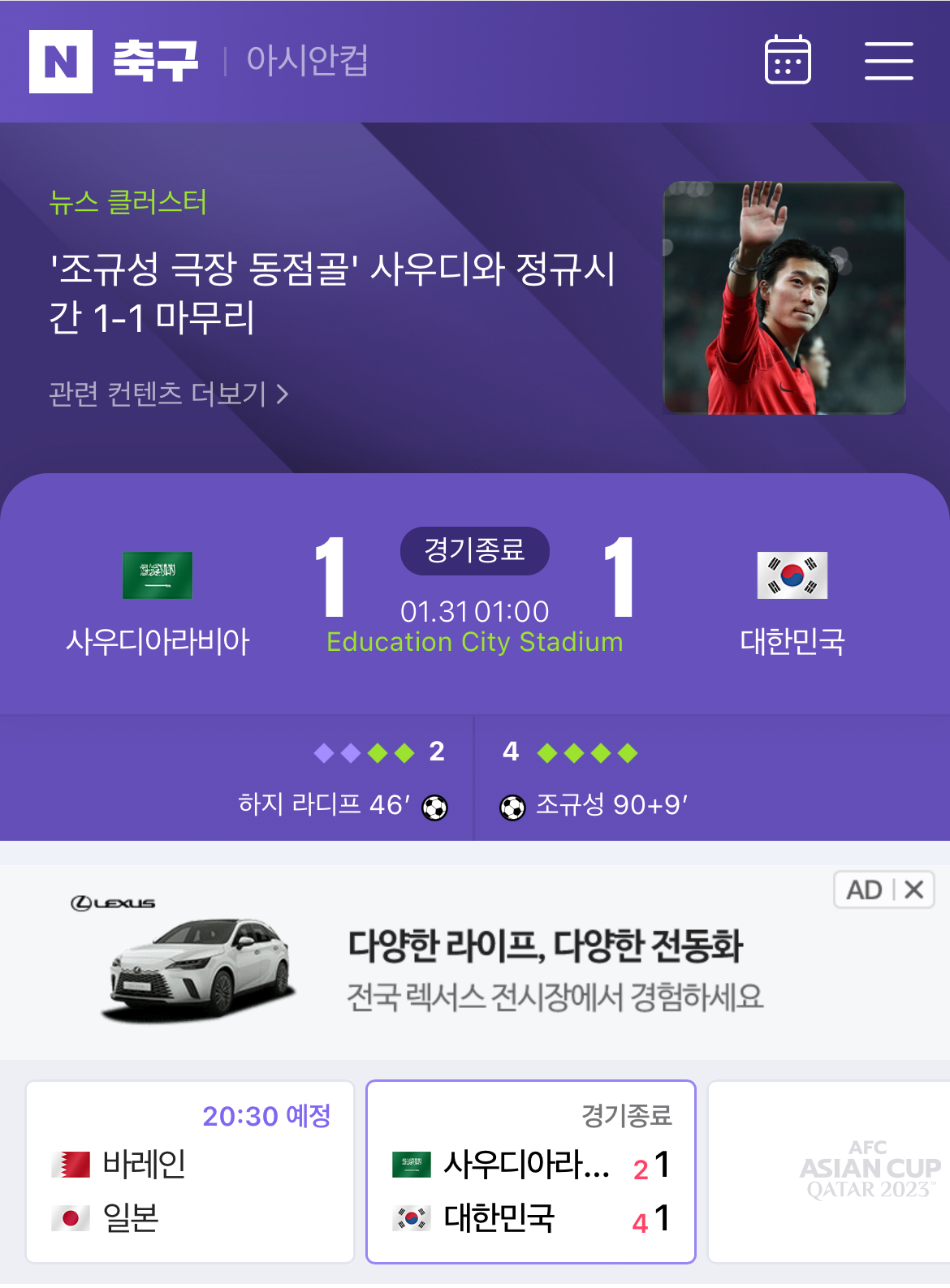 | 아시안컵 8강 일정 (Feat. 대한민국 VS 호주) (2) | 2024.02.01 |