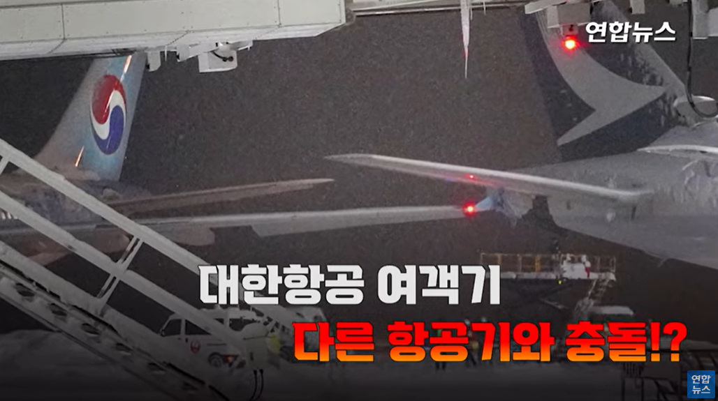 [영상] 폭설에 미끌~ 쾅!…대한항공기, 일본 공항서 타 여객기와 접촉 | 연합뉴스