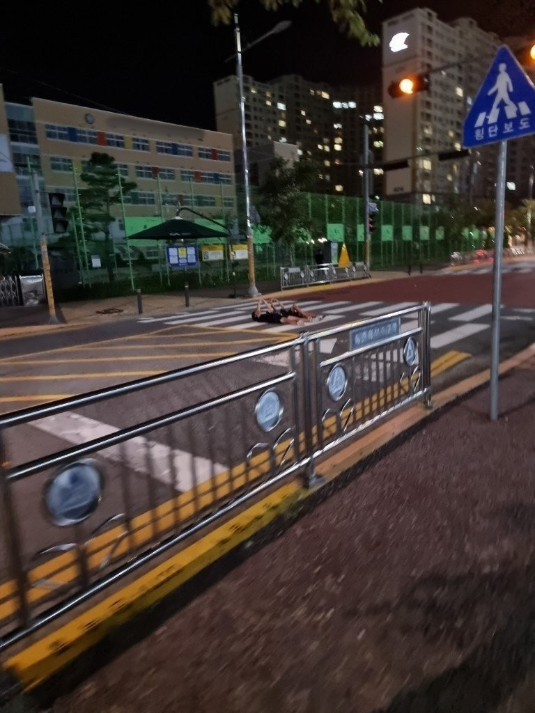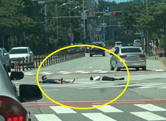 어떻게 저런 곳에서 누울 생각을 하는 것인지 저렇게 차가 많이 다니는 상황인데도 말이죠!!