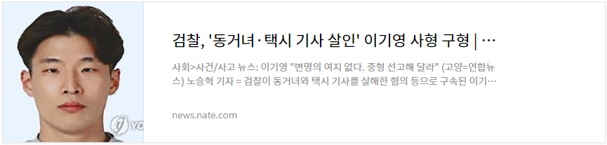 이씨는 "제 범행에 대해 일절 변명의 여지가 없고, 피해자와 유족에게 사죄의 말씀을 드린다"라고 하면서 "사회적 물의가 되지 않도록 재판부에서 중형을 선고해 달라. 엄벌을 받아들이겠다"라고 말했습니다.