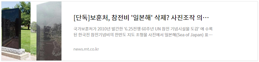 지금이 2014년이었다면 아무리 현지 대학생들이 증거 사진이라고 인터넷에 올리더라도 "진짠가? 보훈처는 그렇지 않다고 해명했다고 하는데?" 이런 생각을 조금이라도 할 수 있겠지만 그 해명이 거짓이었다는 것을 오늘의 기사를 보고 확실히 알게 된 것이죠!! 이때의 해명이 거짓이었다는 것을 실제 기념시설물에는 'Sea of Japan'이라고 하고 국가보훈처 홈페이지에는 그 글씨를 지워 사진을 올리는 아주 얍쌉한 짓을 한 거죠, 제가 글 서두에 얍쌉한 대상이 누구라고 했었죠? 바로 일본 정치인 한본인 이라고 말씀드렸죠?