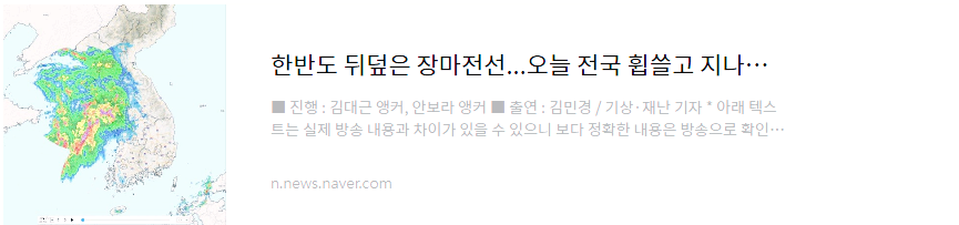 그렇게 빠르게 일본방향으로 이동한 구름 전선의 모습을 보고 작년부터 최근 과거의 장마의 형태를 인터넷에 검색을 하니 장마라는 표현보다 늦은 장마 이른 장마 이런 표현과 함께 장마보다는 집중호우라는 단어가 더 많이 사용되었음을 알 수 있었습니다.
