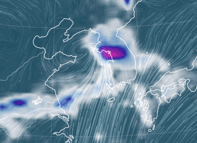 이 earth.nullschool.net 홈페이지를 보면 과거의 기상을 시간단위로 자세히 볼 수 있기 때문에 오늘 예보에 표현한 장마전선이 25일 남부지방을 강타한 장마전선이 아니라는 것은 쉽게 알 수 있습니다,