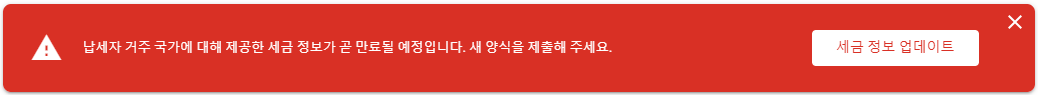 Google Adsense의 세금 정보를 업데이트하라는 메시지가 계속해서 표시가 됩니다. 그것도 빨간색으로 표시를 해서 무언가 이 정보를 업데이트 하지 않으면 문제가 생길 것처럼 Google 사용자를 걱정