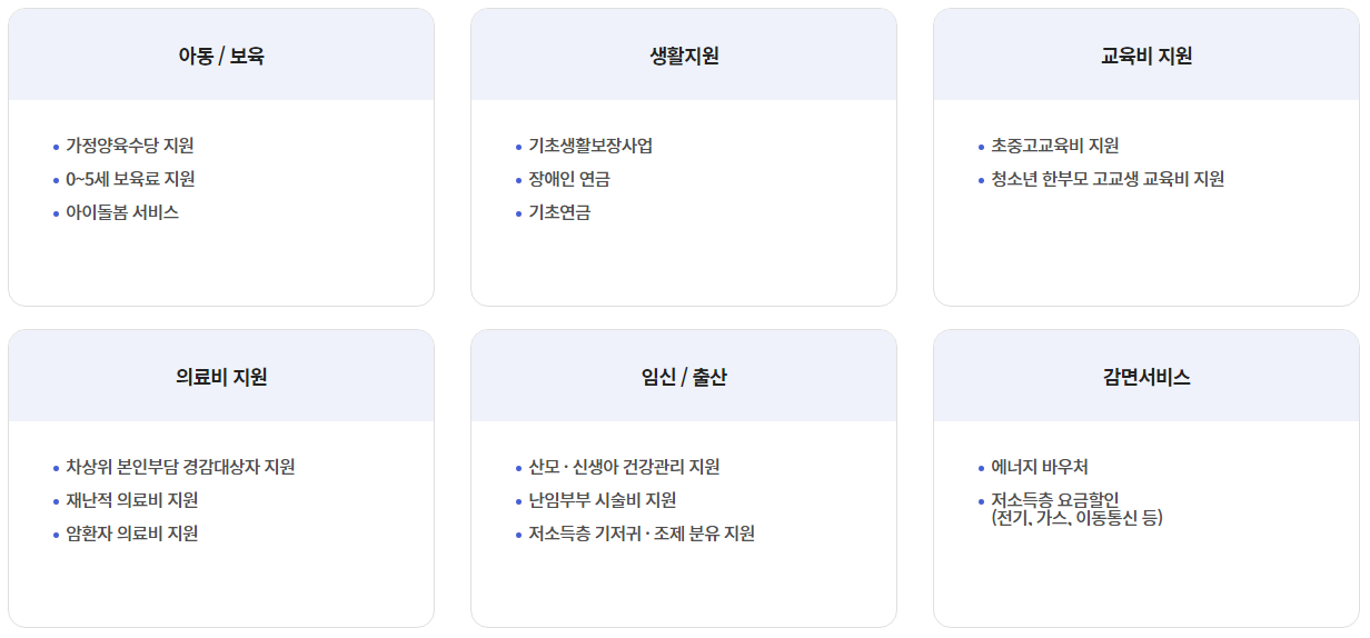 위처럼 안내를 받을 수 있는 복지 사업에는 다음과 같습니다.