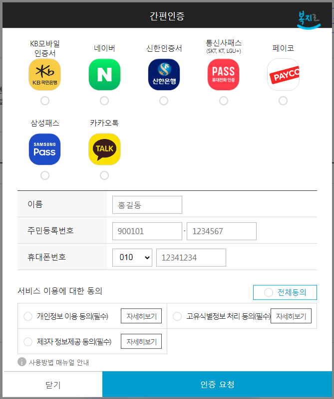 저는 간편인증 'PASS'를 이용해 보도록 하겠습니다.
