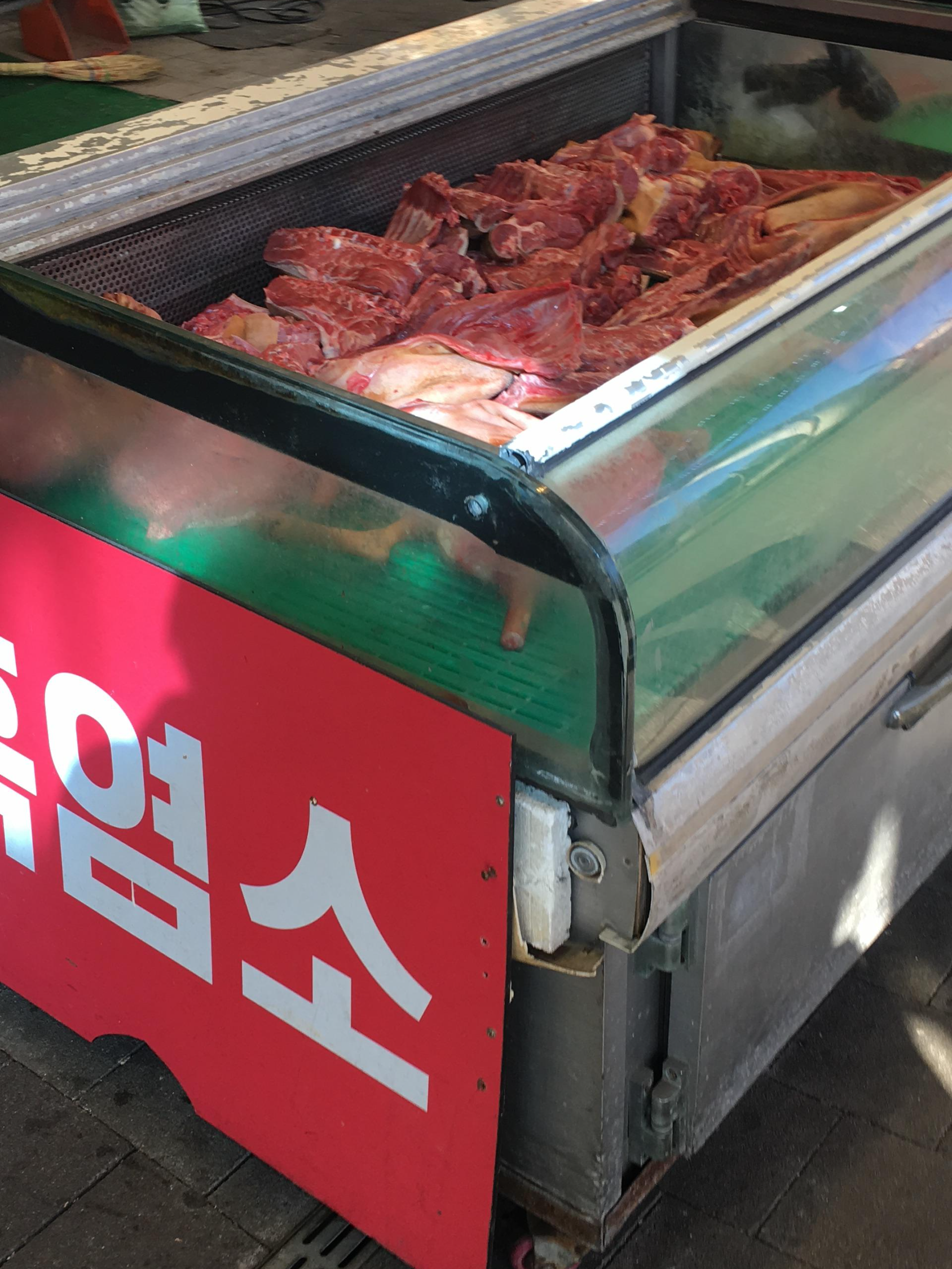 걷다 보니 만난 모란시장의 두 번째 아이템 아니 첫 번째라고 해야 하는 아이템인 개고기!! 그 고기를 파는 가게를 만나게 되었습니다.
