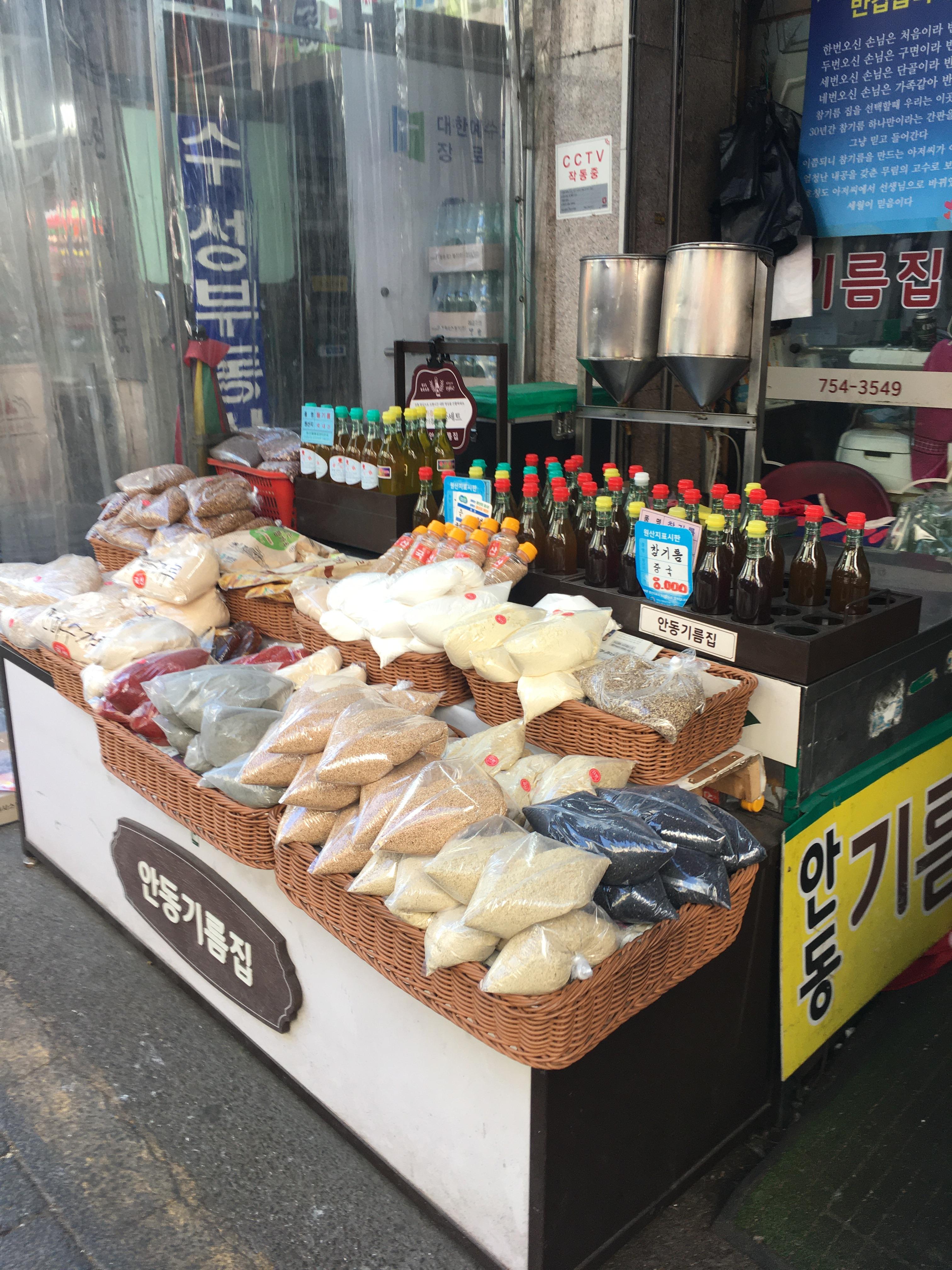 여기저기 방향으로 걷기가 만난 참기름 골목!, 뭐 순대 골목, 아귀찜 골목 뭐 이런 식으로 이 골목은 거의 대부분이 참기름 집이었습니다.