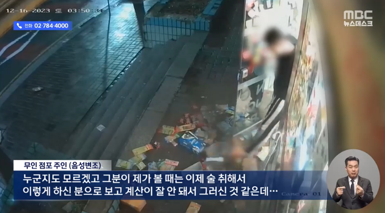 CCTV를 보면 술에 취한 것 같이 몸을 움직이는 한 남성이 물건을 계산하려고 키오스크 앞에 왔지만 갑자기 발길질을 하더니 가게 안을 아수라장을 만들어 놓습니다.