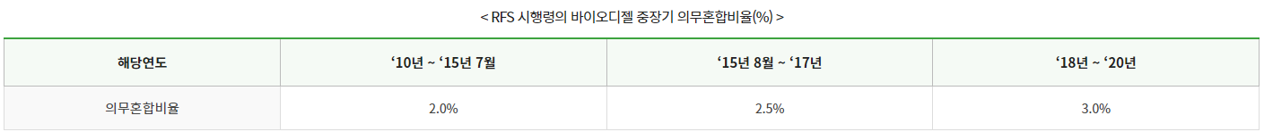 내용을 보니 그나마 화물을 수송할 때 사용하는 기름은 바이오 기름을 사용할 수 있게 100% 사용할 수 없지만 혼용가능하다는 법안을 2015년에 시행했다는 안내가 나옵니다.