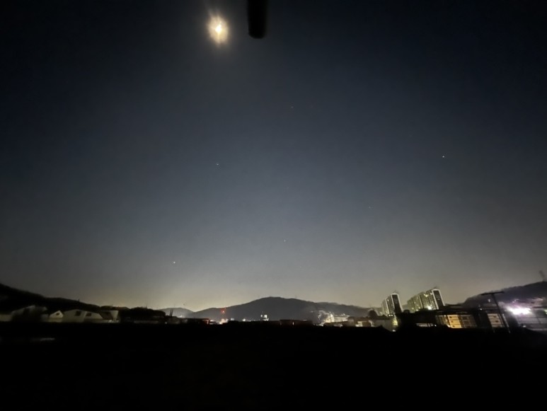 밤하늘에 달이 있으면 정말 환하죠? 그 달 빛이 너무나 강하기 때문에 위 사진도 보시면 아시겠지만, 폰으로 담을 수 있는 별의 수가 너무나 줄어듭니다.