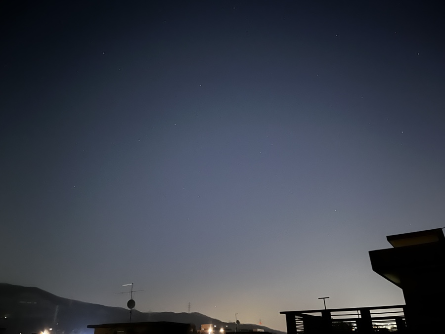 정말 이래도 되나 싶을 정도로 하늘에 구름 한 점 없더라고요, 그런데 제가 살고 있는 곳도 광해가 있어 밤하늘을 찍으면 항상 땅 방향을 환한 사진 결과물을 만나보게 됩니다.