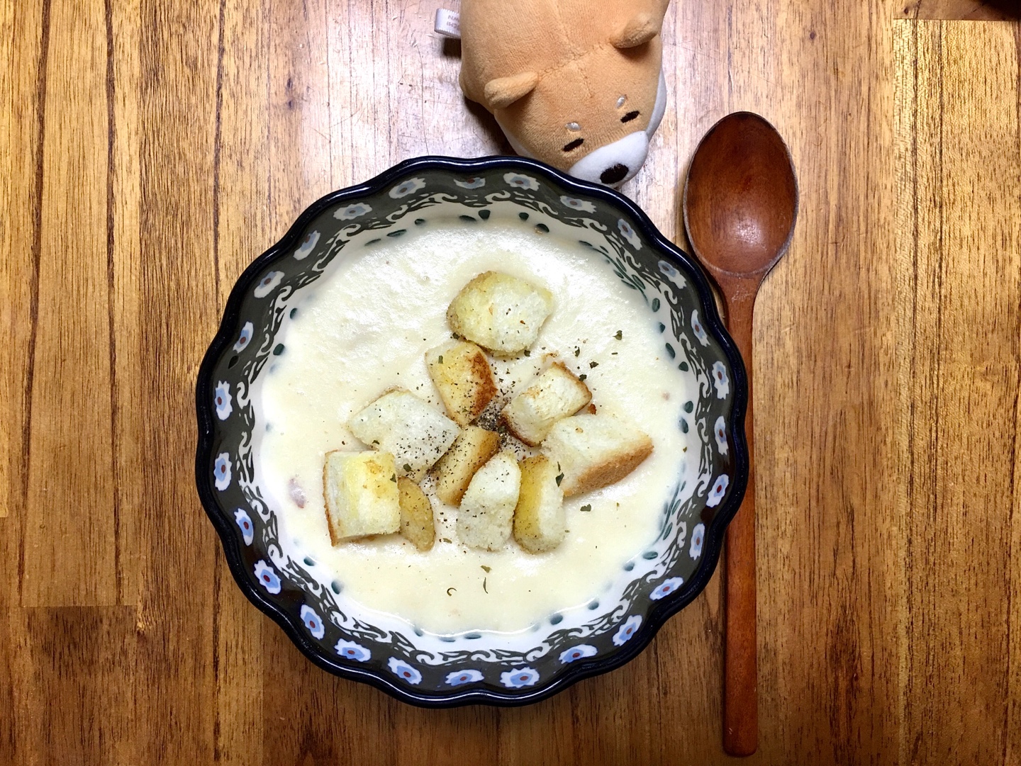 그렇게 해서 만들어 아이들과 같이 먹은 감자수프입니다.