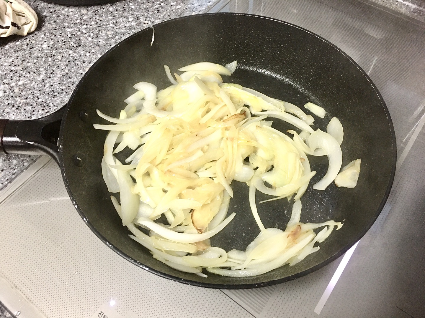 양파의 볶아진 정도는 갈색이 이쁘게 날 정도로 타지 않게 잘 보고 볶아야 합니다.