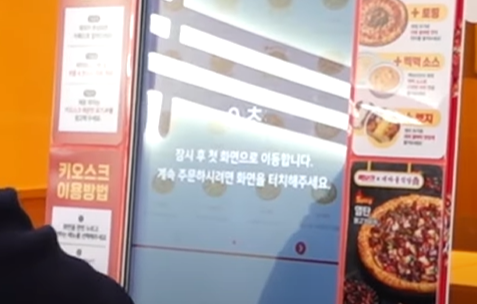 그런데 그때 해당 '빽보이피자' 키오스크는 대기 시간을 주지 않고 10초 후 알림을 주는데 그것은 처음부터 다시 해야 한다는 내용이었습니다.