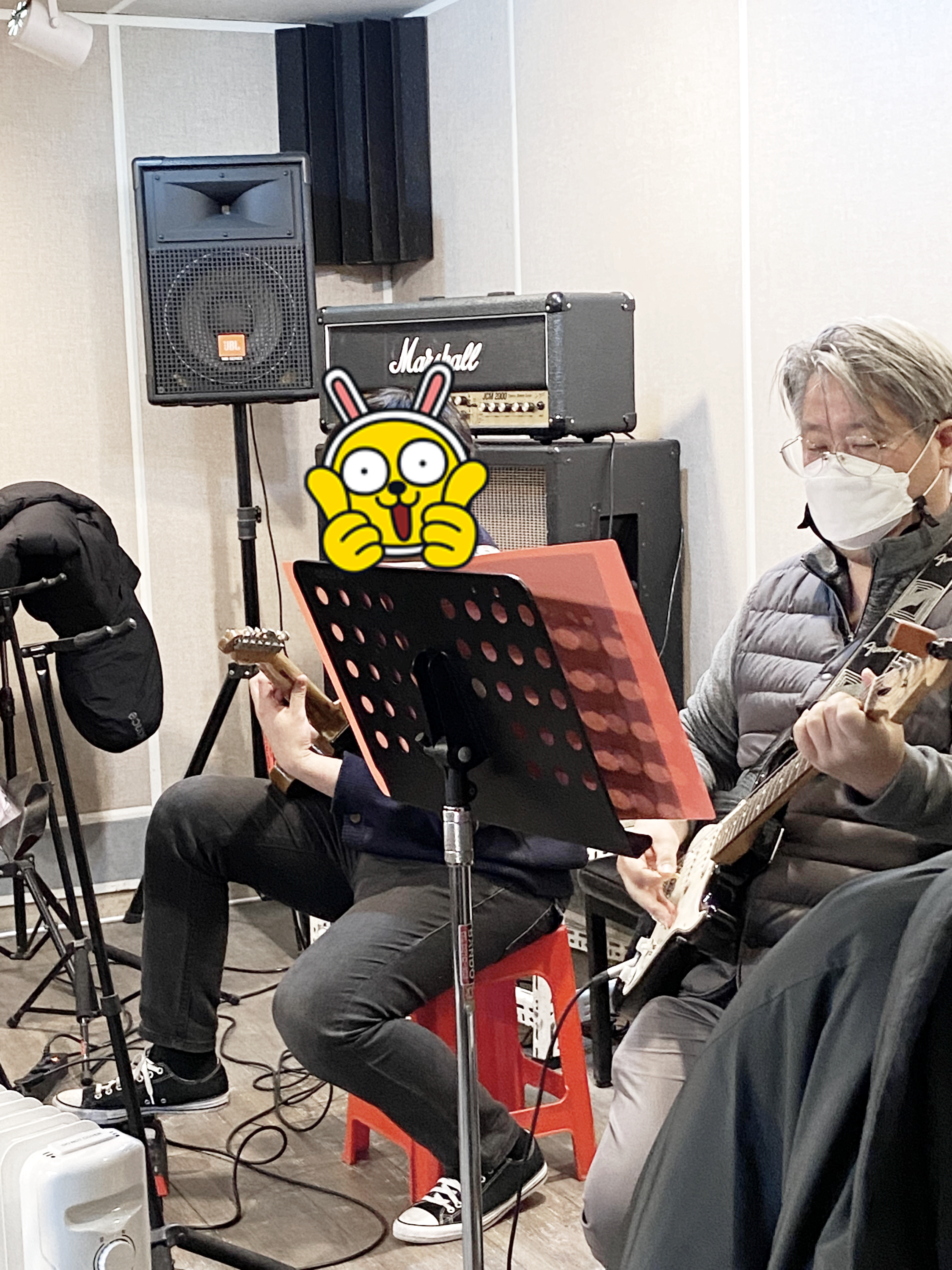 1월 말에 하는 공연에 딱 연습 세 번 하고 올라가자는 리더의 말에 놀란 가슴 부여잡고, 직원이 빌려 준 일렉 기타를 가지고 집에서 열심히 영상을 보고 연습했건만, 막상 연습에 참여했는데 퍼스트 기타가 퍼스트와 세컨드를 복합해서 시전 하시는 바람에 중간에 참여하기도 했고 나이도 한참 많은 제가 아무런 조정도 없이 퍼스트에게 이렇게 말을 했습니다.
