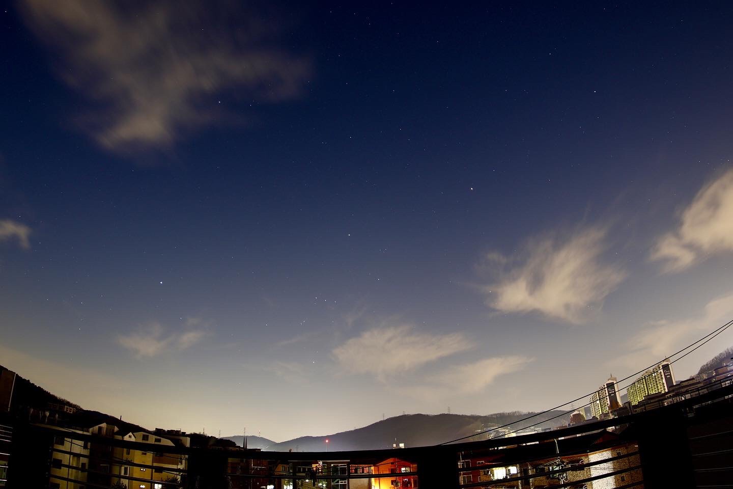 날씨가 추워지면 바람도 많이 불고 공기도 차가워서 그런지 하늘이 청명하게 보이는 경우가 많은데, 특히 새벽에는 정말 맑은 하늘을 보여 주는 경우가 많습니다.