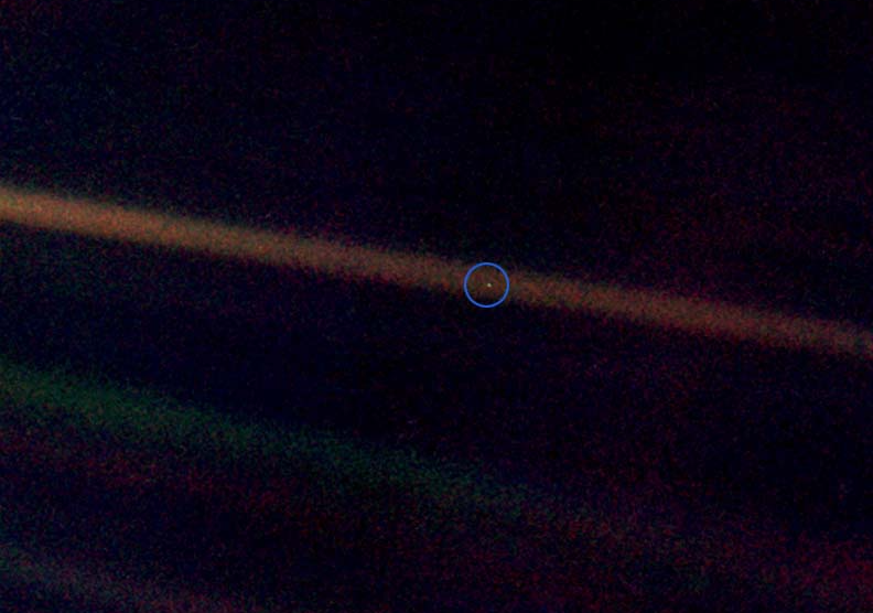 이 사진은 칼 세이건의 유명한 말을 낳았습니다: "저기 있잖아요. 저게 바로 우리 고향이에요. 저게 우리예요. 당신이 사랑하는 모든 사람, 당신이 알고 있는 모든 사람, 당신이 들어본 적이 있는 모든 사람, 존재했던 모든 사람이 그들의 삶을 살아갔죠."