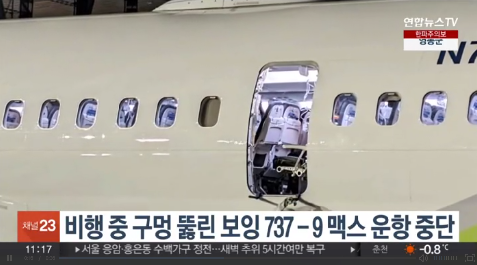 평소에 점검을 하지 않는 문이며, 그 문에서 어떤 문제가 발생하는지 알 수 없는 상황일 텐데 이 점만 보더라도 구멍이 다른 기체에서도 또 발생할 것이 분명해 보입니다.