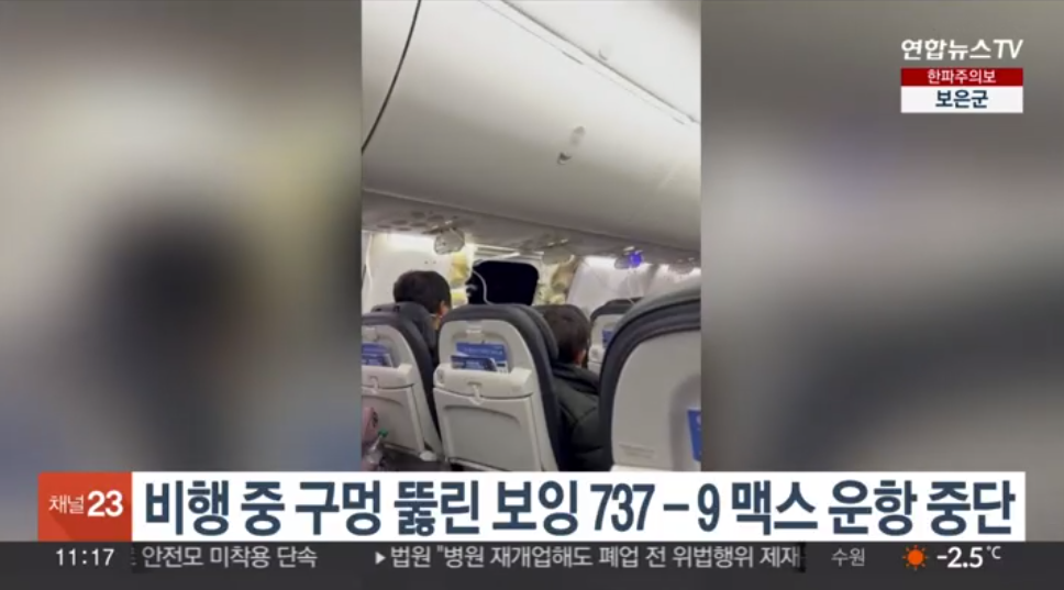 비행 중 구멍이 '뻥'… 보잉 737-9 맥스, 운항 일시 중단