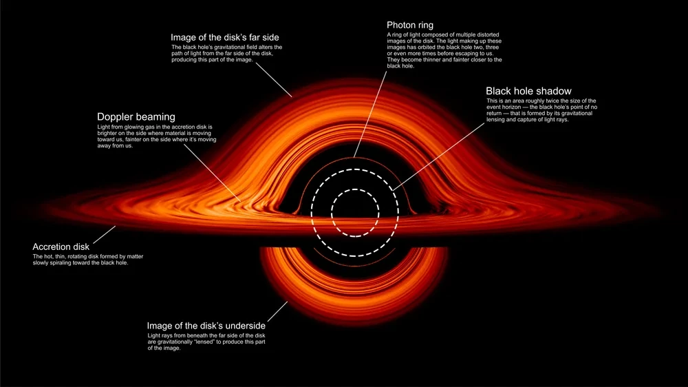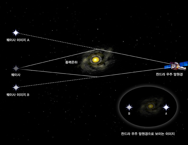 이를 중력 렌즈 효과라고 하며, 블랙홀 뒤에 있는 천체의 이미지를 왜곡시키거나 여러 개로 보이게 할 수 있습니다.