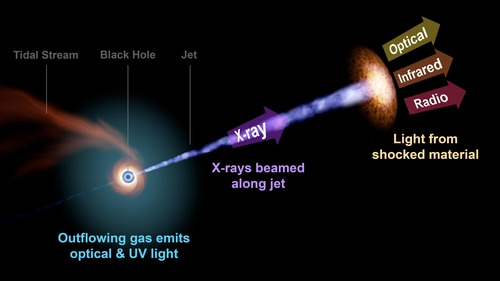 (서울=연합뉴스) 엄남석 기자 = 약 85억 광년 밖에서 초대질량블랙홀이 가까이 접근한 별을 파괴해 잡아먹고 트림하듯 빛에 가까운 속도로 물질...