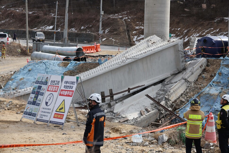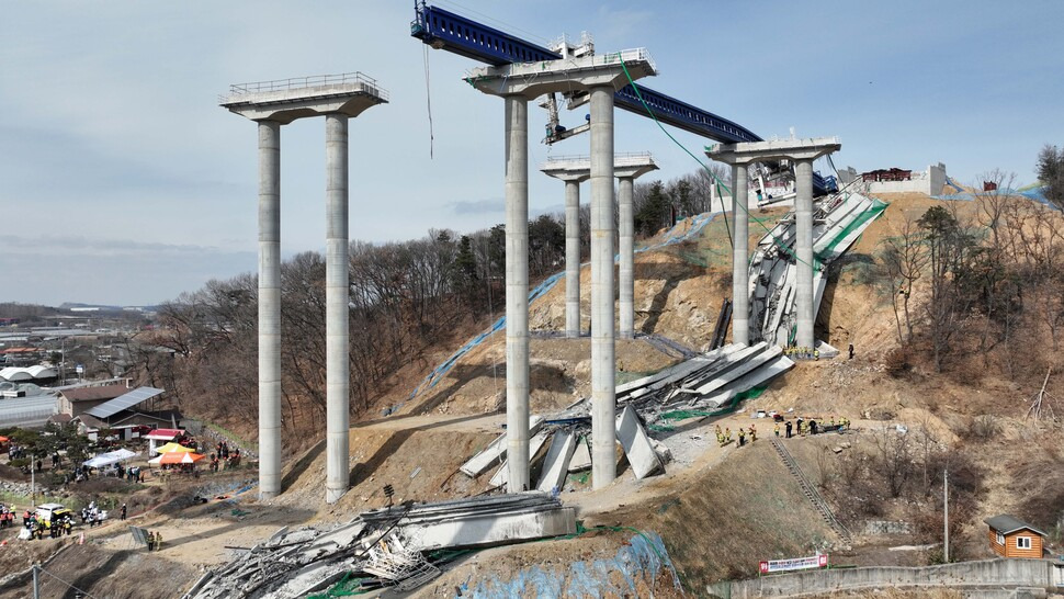25일 오전 세종~안성 고속도로 건설현장에서 상판 대들보 구실을 하는 빔이 무너지는 사고가발생한 가운데, 사고를 목격한 시민들은 “전쟁이 난 것 같은 소리가 났다”며 긴박했던 당시 상황을