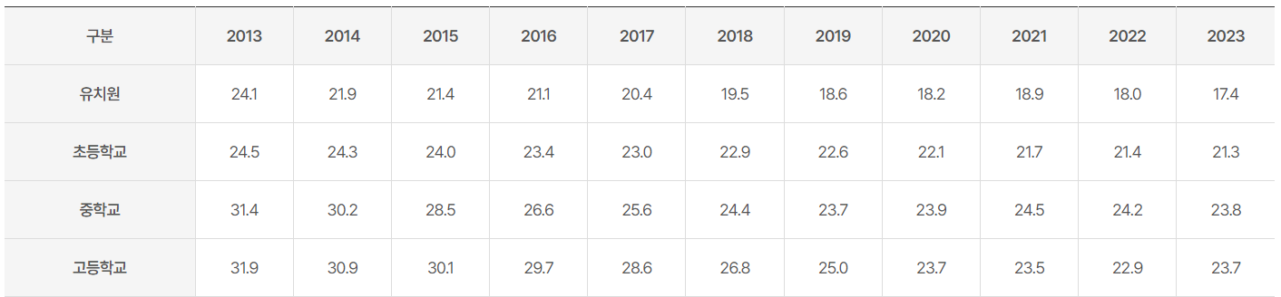 서울시 년도별 인원 변화를 서울시교육청에서 발췌하였습니다.