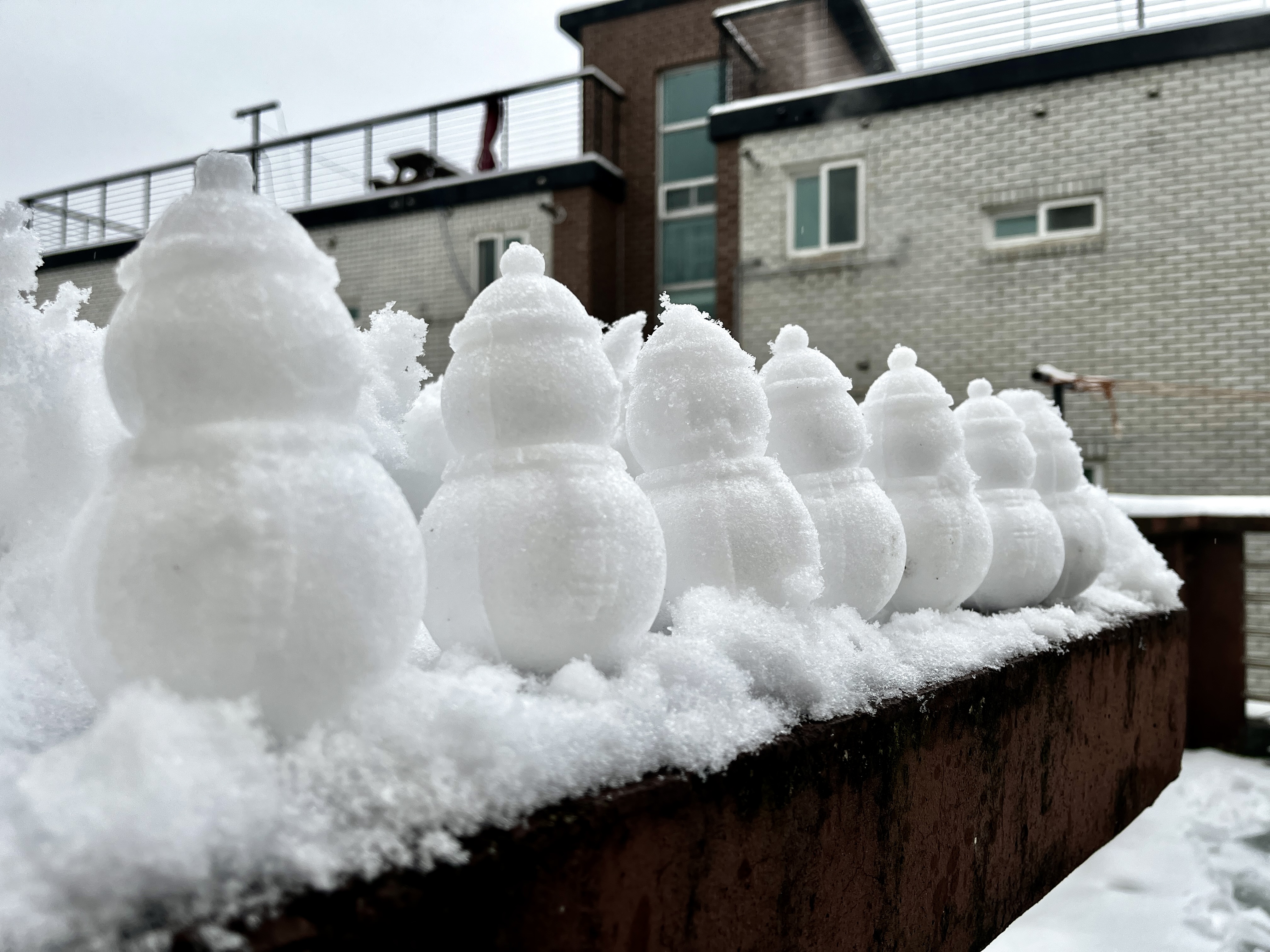 먼저 눈사람 집계를 이용해서 눈사람을 만들고, 옥상 담에 올려놓고 두번째는 아이들과 함께 정말 눈 사람을 만들어 보려고 했습니다.