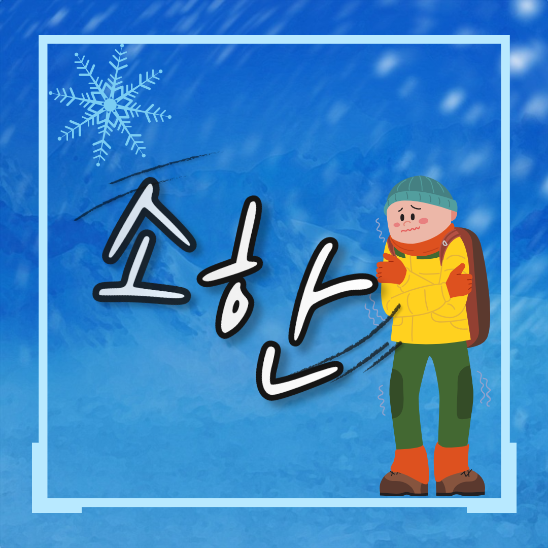 소한은 24절기를 사용하는 나라 중에서 대한민국만 대한보다 더 춥웠었는데요, 이번주 금요일에도 일기예보를 보니 일부 지역 눈이 내린다고 하는데 추워 지지 않을가 생각되어집니다.