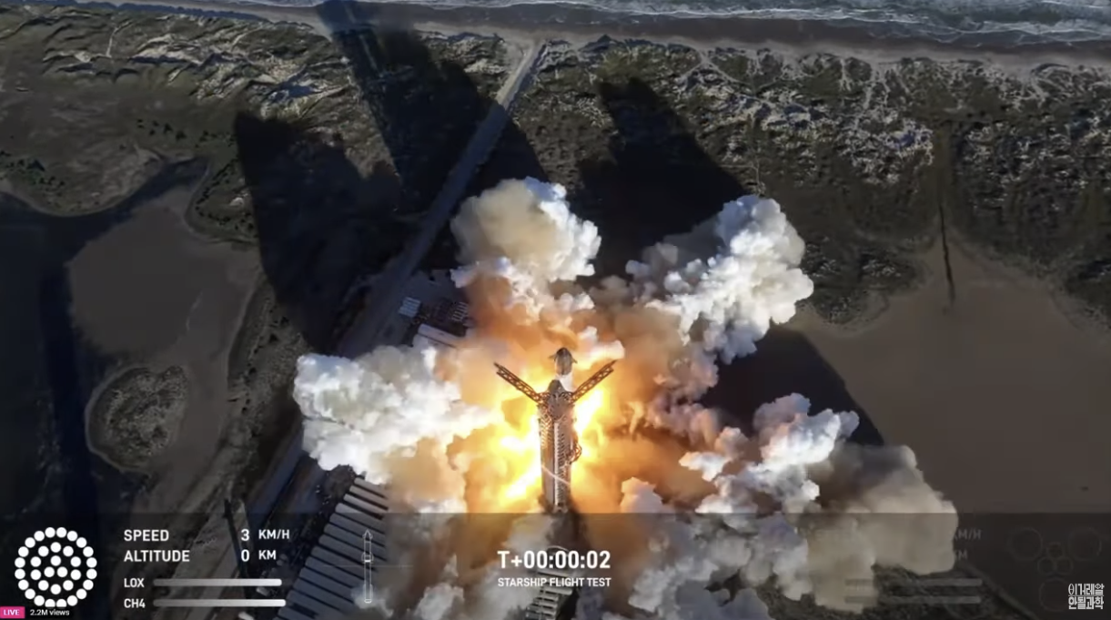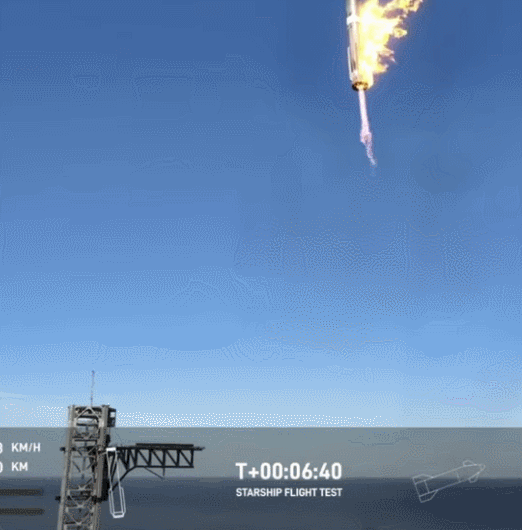 이렇게 발사체는 완벽하게 돌아왔고요, 이렇게 돌아오는 순간 스타십은 엔진이 하나가 꺼졌고 그 순간 메타(CH4)가 급격히 줄어드는 현상이 발생했고, 결국은 스타십과 통신이 전부 끊어지며, 폭발한 것으로 확인되었습니다.
