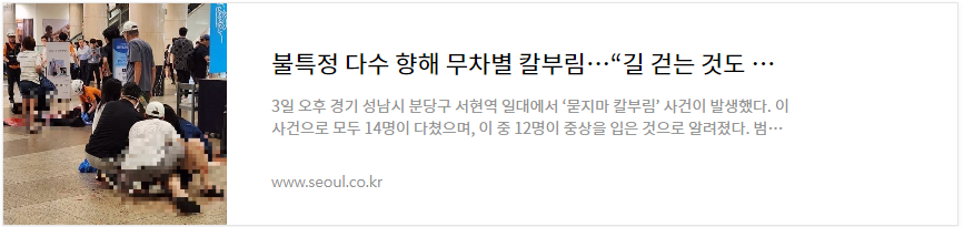 | 서현역 무차별 칼부림 사건 피해자 중 2명 뇌사 (4) | 2023.08.04 |