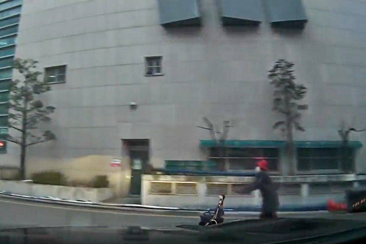 정말 놀라운 것은 차량이 나오는 것을 눈으로 확인하고 이런 행동을 했다는 것입니다.