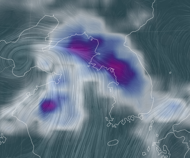 한반도 남한을 다 덮고 있다고 보시면 될 것 같습니다.