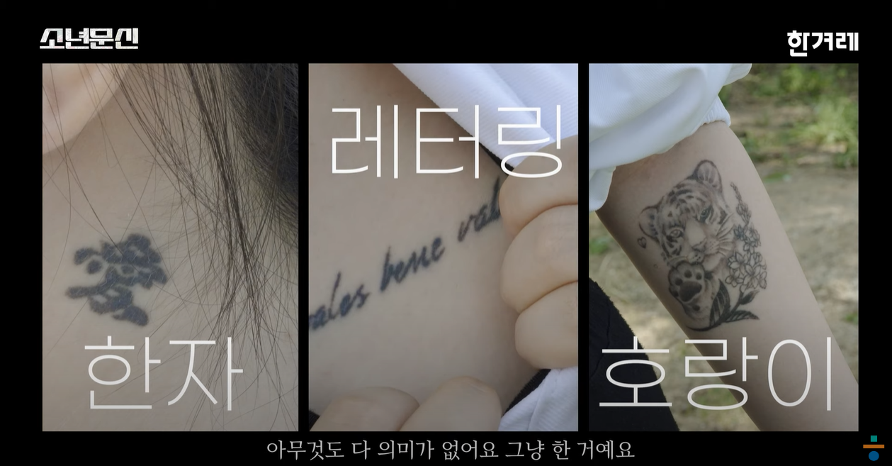 한겨레에서 '소년문신 - 문신 제거를 결정한 10대의 이야기'라는 제목의 영상을 올렸습니다.