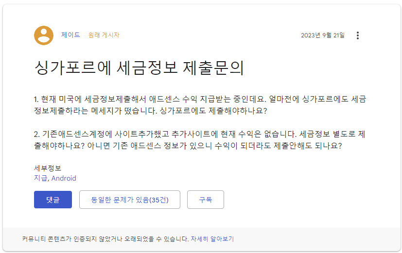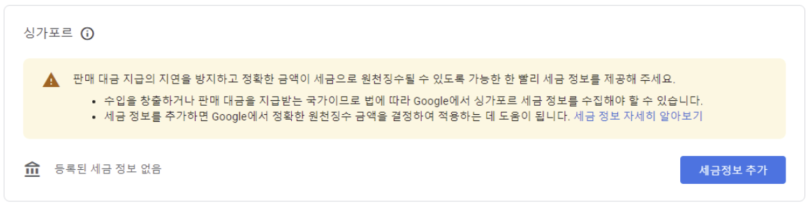 싱가포르 관련 세금 정보 제출 방법 - Adsense 제출